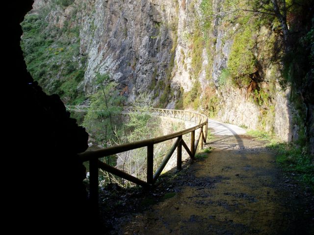 La ruta, atraviesa varios tuneles de gran epectacularidad. En la imagen los tuneles que se encuentrran en el km 18. Todos ellos estan iluminados.
