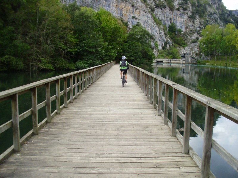 Pasarela sobre el embalse de Valdemurio, en el Valle de Quiros.